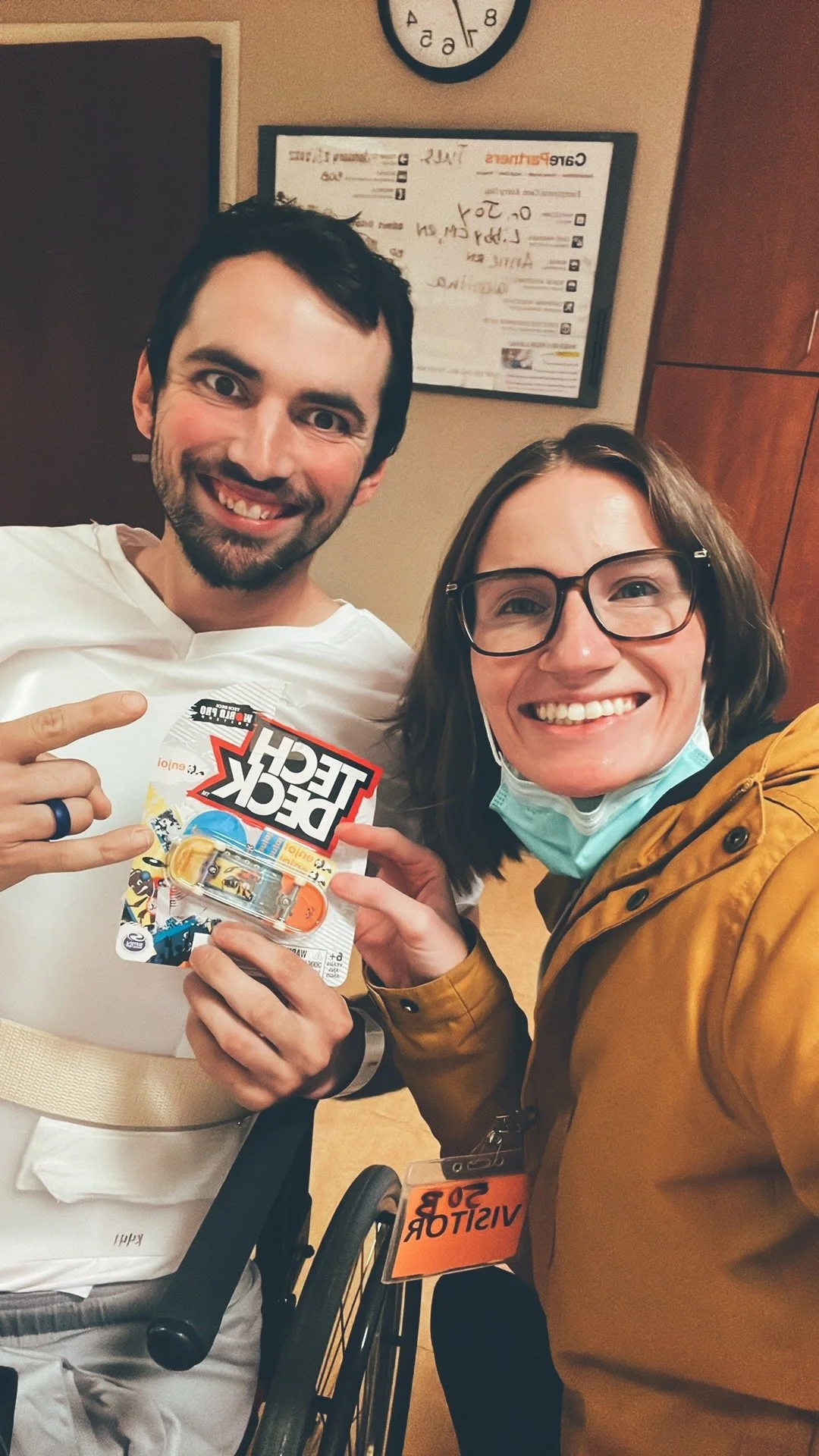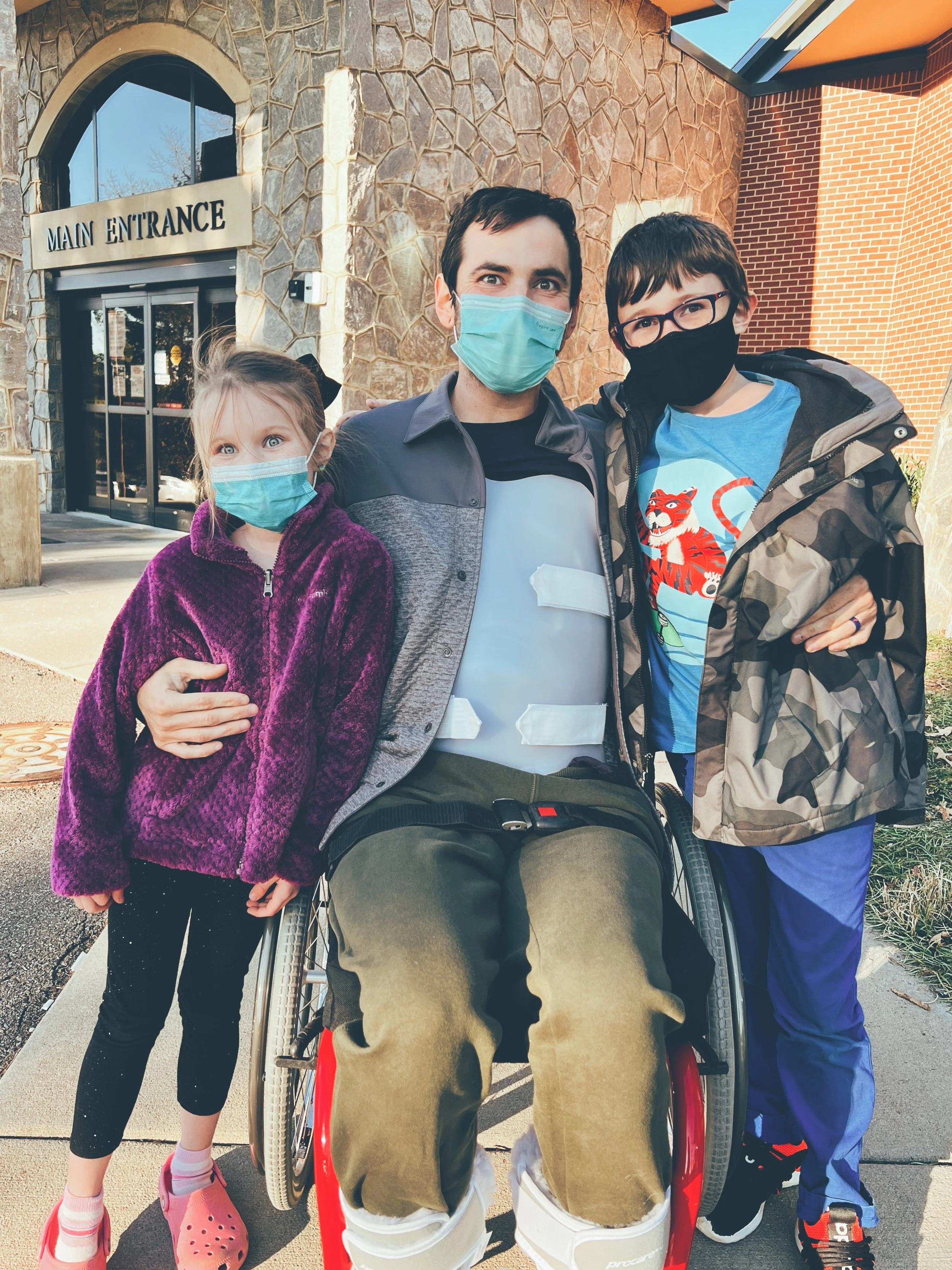 On January 11th, 2022 my husband was in an accident. He was working on a job with my Dad, and a wall fell on him and crushed his back. He crushed his L1 vertebrae and sustained a spinal cord injury in the T10-T12 area. His spinal cord didn’t transect (fancy medical word for tear or break) but it was badly stretched and bruised. He immediately lost the use of his legs from the waist down.